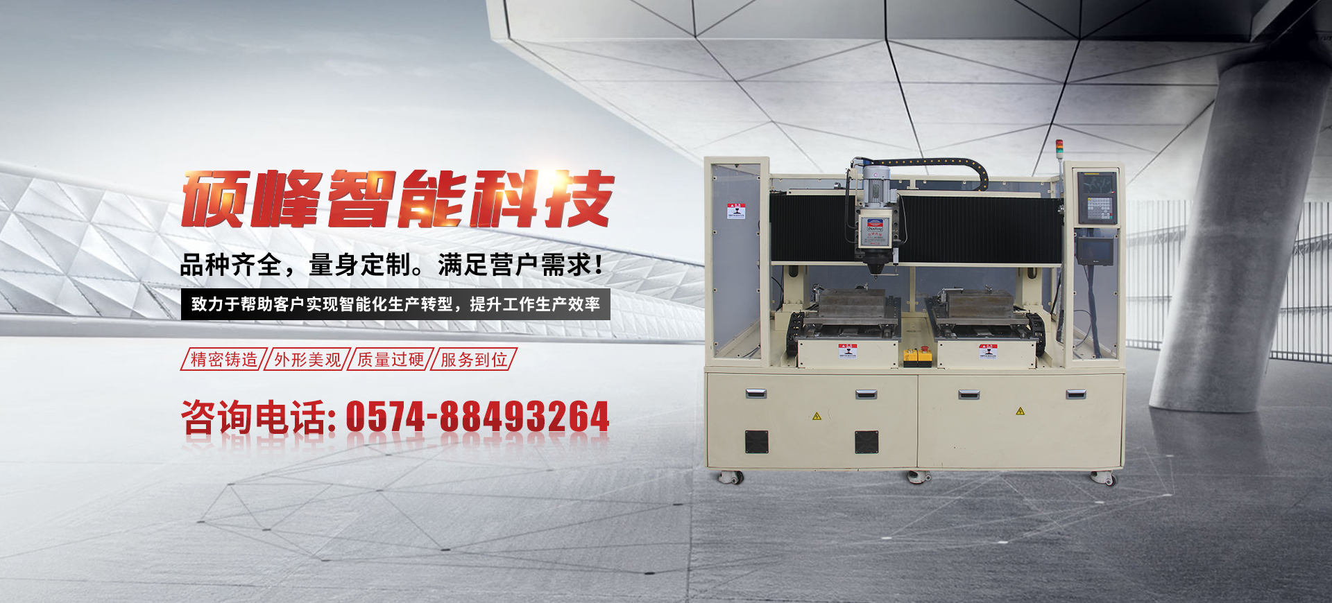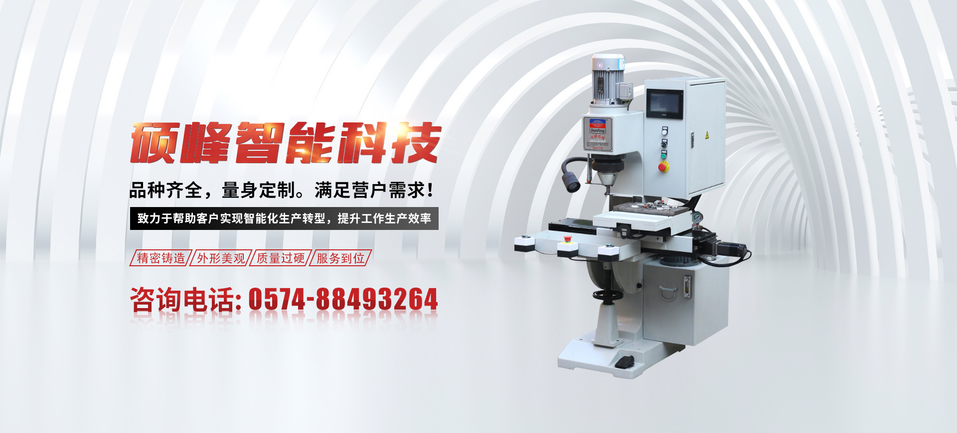 寧波市碩峰智能科技有限公司成立于2018年,坐落于寧波市鄞州區(qū)云龍工業(yè)區(qū)。公司主要從事于鉚釘機自動化設備及周邊設備的研發(fā)、生產、銷售與服務。公司擁有數控加工中心,數控龍門加工中心,數控車床加工中心,線切割,搖臂鉆,磨床,剪板機等各種大型加工設備,確保一體化生產,嚴格把控質量關,憑借公司的實力、誠信以及產品質量獲得了業(yè)界的普遍認可。